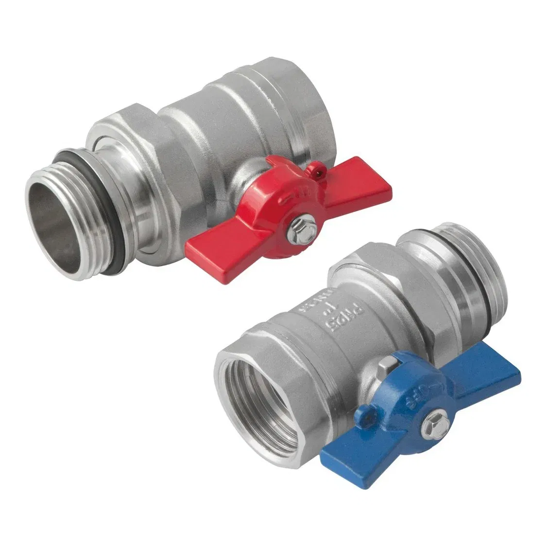 Setul de robineți cu racord olandez KOPH 1” FI–FE este conceput pentru instalarea și izolarea circuitelor în sistemele de încălzire în pardoseală cu agent termic, fiind utilizat frecvent la conectarea distribuitoarelor, grupurilor de amestec sau a altor componente ale instalației.