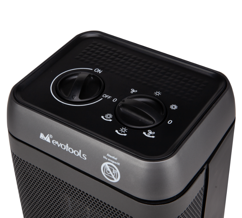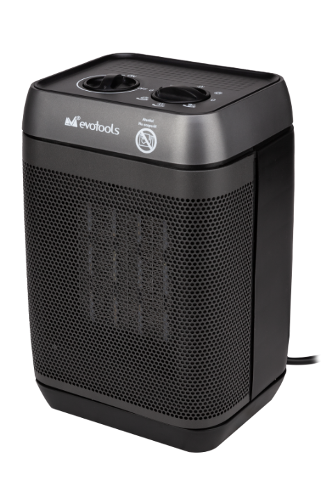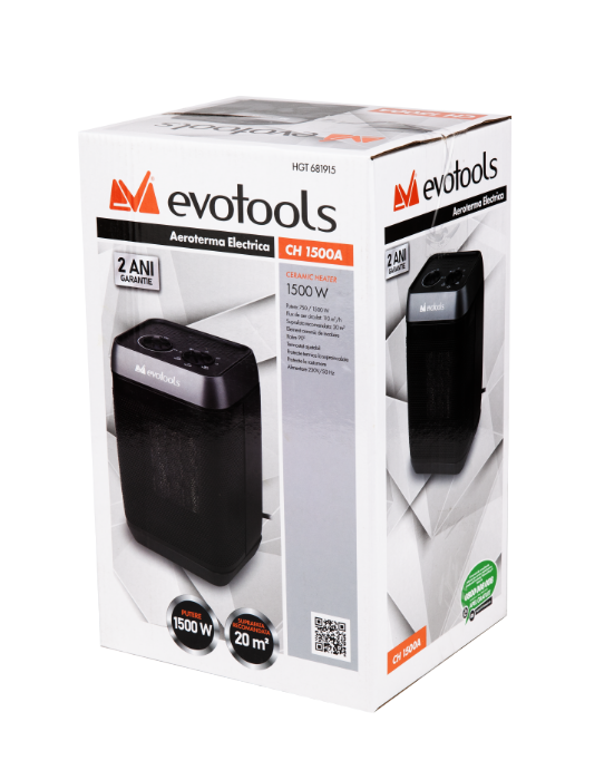 Aeroterma Evotools CH 1500A este echipată cu termostat automat, protecție la supraîncălzire, și întrerupător de siguranță la răsturnare. Poate fi folosită în siguranță în orice încăpere uscată – ideală pentru locuințe, birouri, ateliere sau case de vacanță.