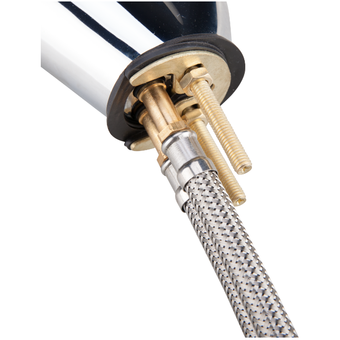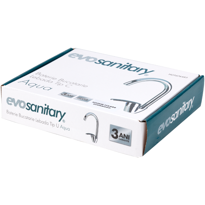 Baterie bucătărie tip lebădă cu pipă înaltă arcuită, cartuș ceramic 40 mm și 2 racorduri flexibile 350 mm incluse. Montaj rapid EASY FIX 1/2”. Durabilă și ușor de întreținut. Garanție 3 ani.