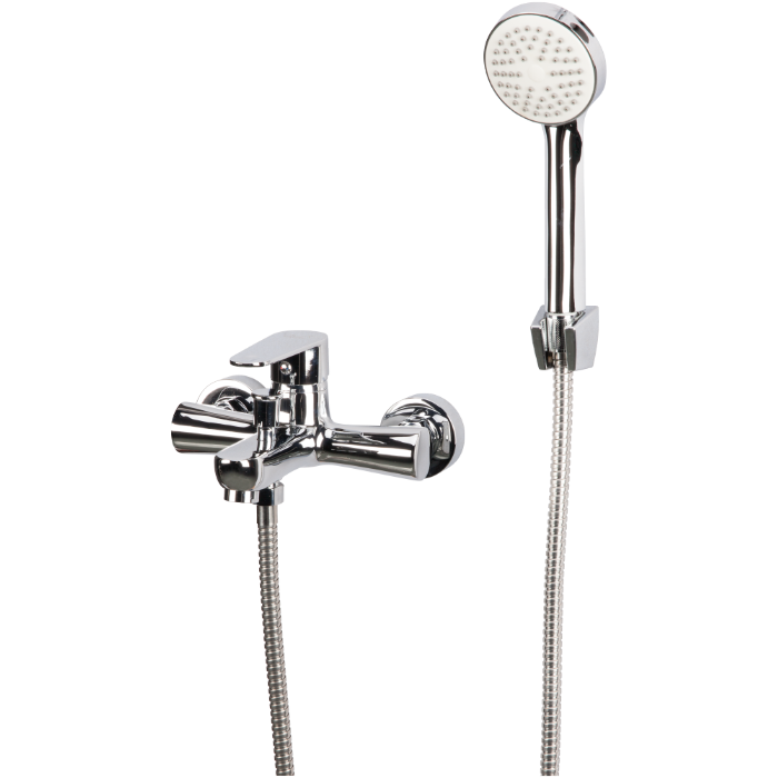 Baterie cadă duș echipată cu cartuș ceramic 40 mm, pară de duș anticalcar și furtun inox extensibil 1.4 m. Include racorduri excentrice și sistem EASY FIX 1/2”. Garanție 5 ani.