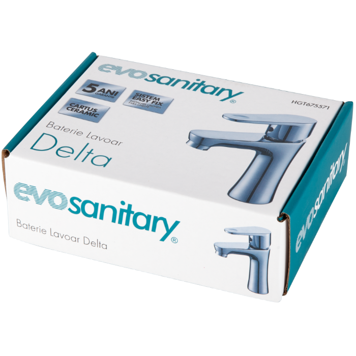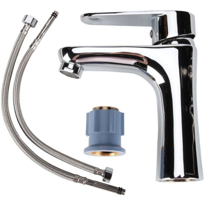 Baterie monocomandă din alamă cu finisaj lucios argintiu, cartuș ceramic 35 mm și racorduri flexibile 400 mm incluse. Montaj rapid EASY FIX 1/2”. Durabilă și rezistentă. Garanție 5 ani.