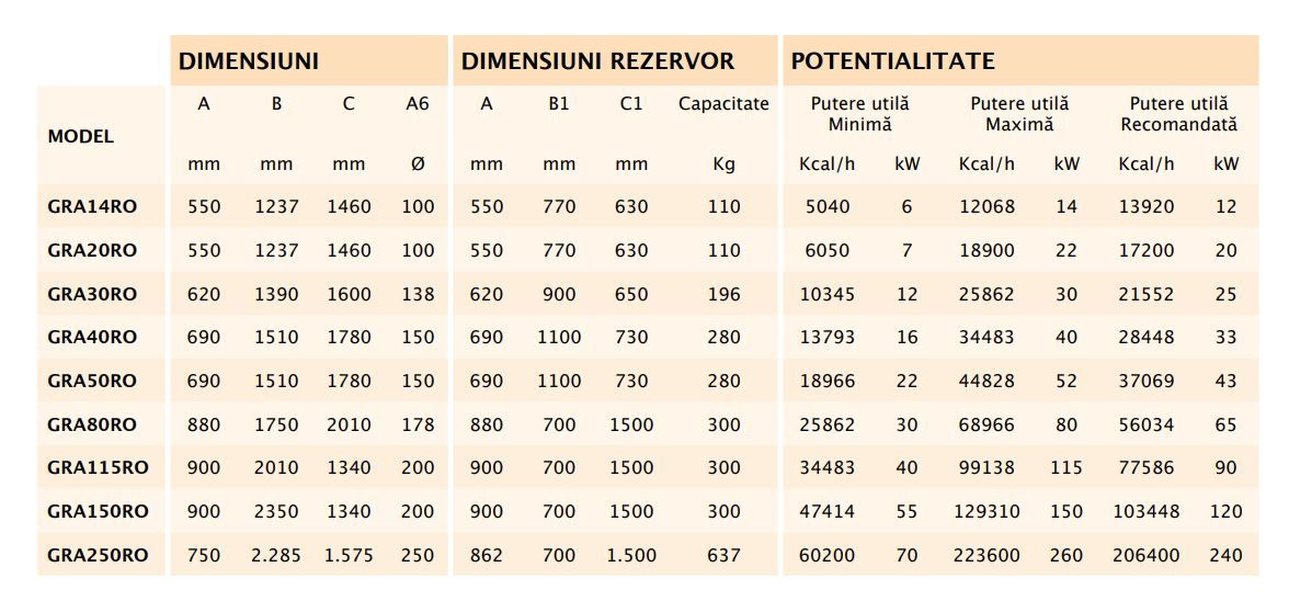 • Combustibil: peleți 6 mm