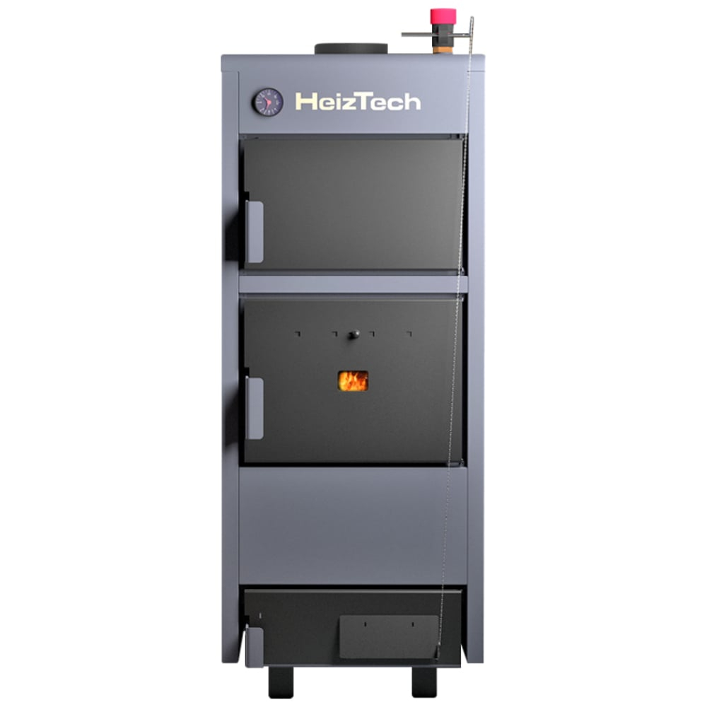 Fabricat din tablă de oțel cu grosimea de 5 mm, cazanul HeizTech are o structură robustă, sudată și îndoită pentru rezistență maximă. Camera de ardere spațioasă (380 × 395 × 533 mm) permite utilizarea eficientă a lemnelor și brichetelor, iar ușa de alimentare (380 × 300 mm) facilitează încărcarea și curățarea.