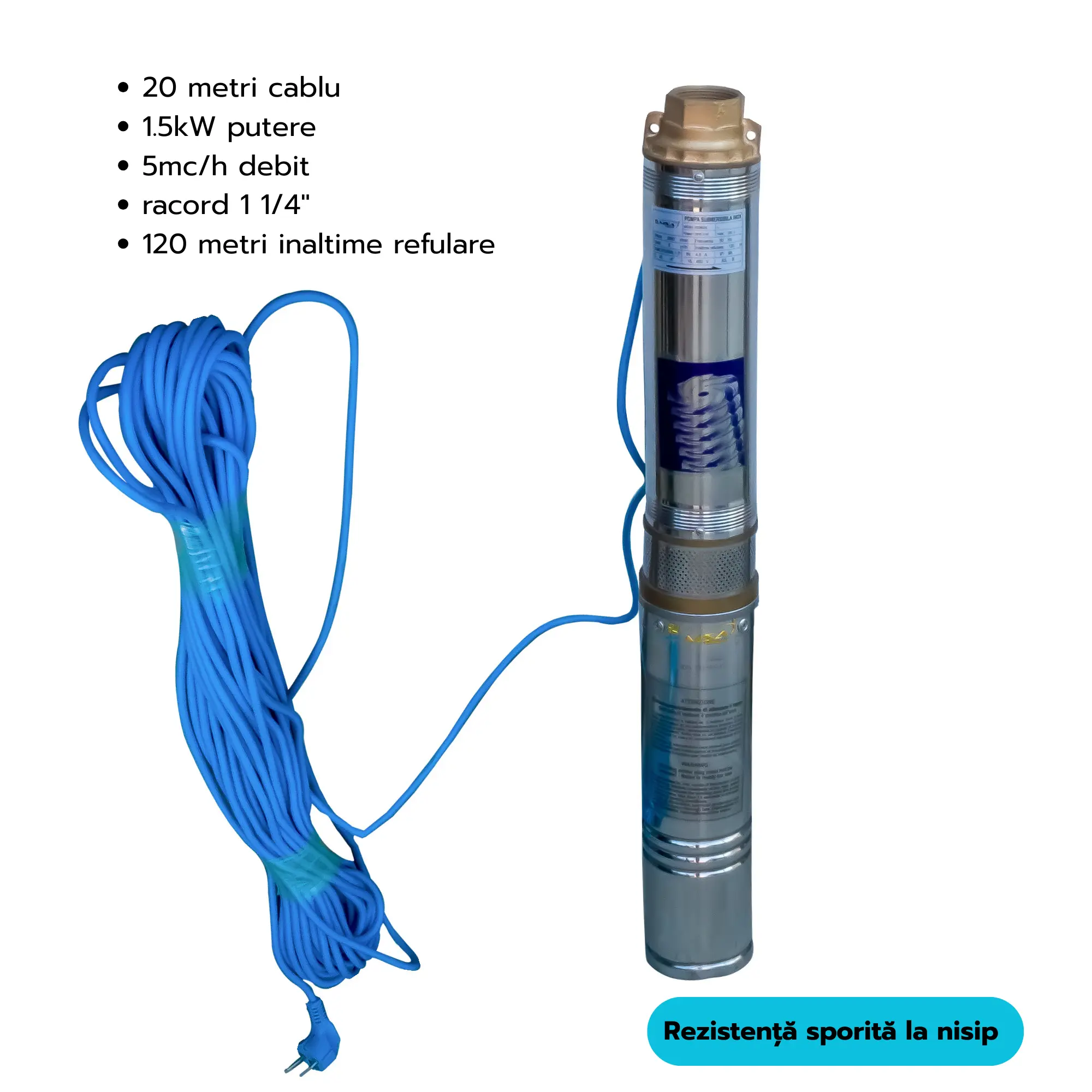 ✔️ Cablu lung 20m inclus – instalare ușoară în foraje adânci