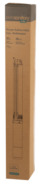 Pompă Submersibilă Centrifugală 750W Inox, 12 Turbine, Panou de Comandă – Rezistentă la Nisip, pentru Foraje Adânci | EvoSanitary +Plus