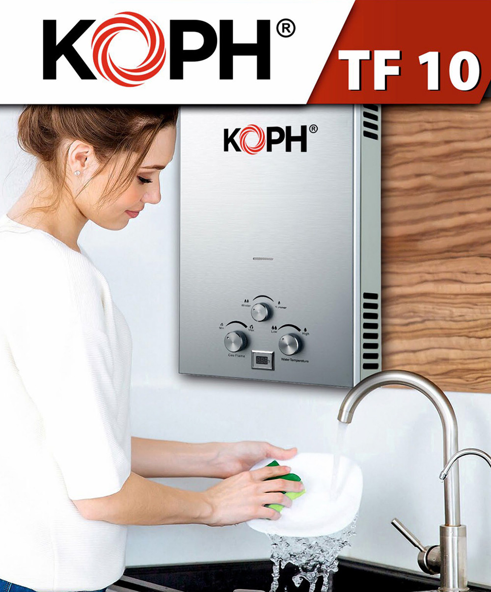 Instantul pe GPL KOPH TF10 cu tiraj forțat este soluția ideală pentru obținerea rapidă a apei calde menajere în gospodării, case de vacanță sau locuințe fără acces la gaz natural.