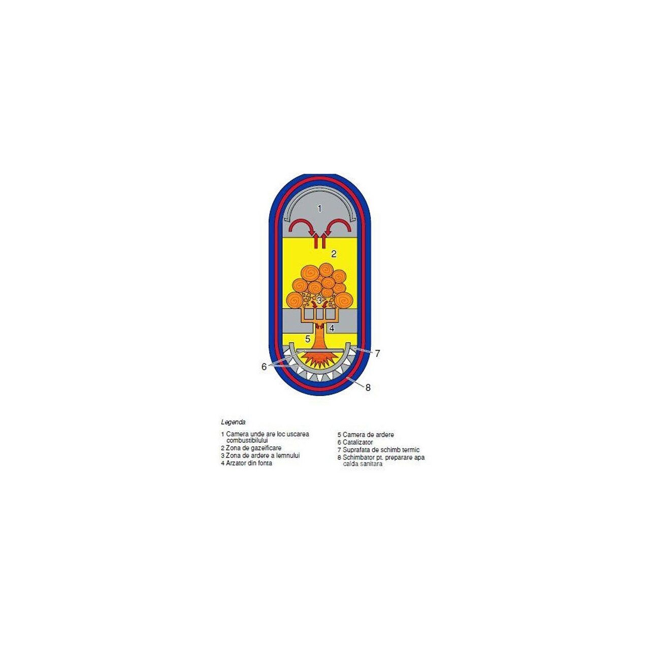 | Tip ardere | Gazeificare cu flacără răsturnată |