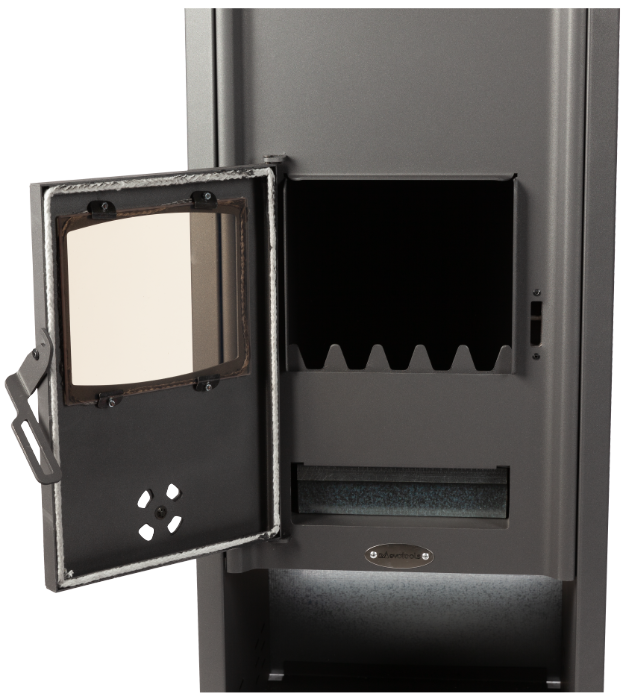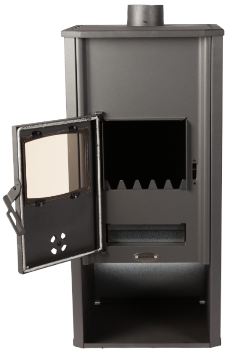 Pachet Șemineu termic pe lemne 21.4 kW + 4 calorifere, vas expansiune 24L, pompă circulație, robineți si aspirator cenusa – încălzire completă până la 110 m²